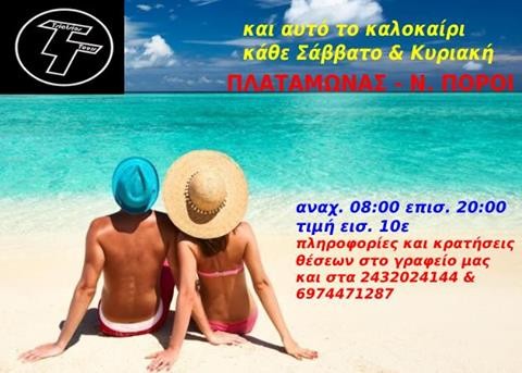 Σας ταξιδεύουμε και αυτό το καλοκαίρι κάθε Σάββατο και Κυριακή, σε Πλαταμώνα και Νέους Πόρους!