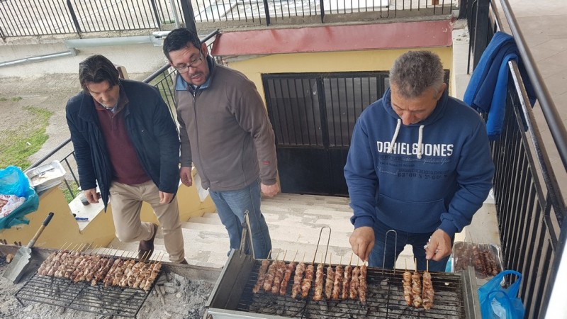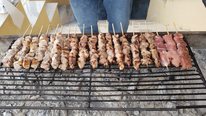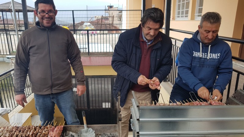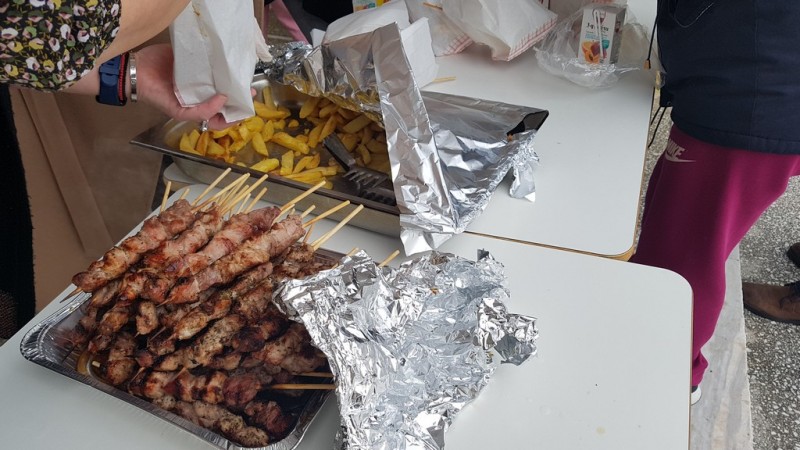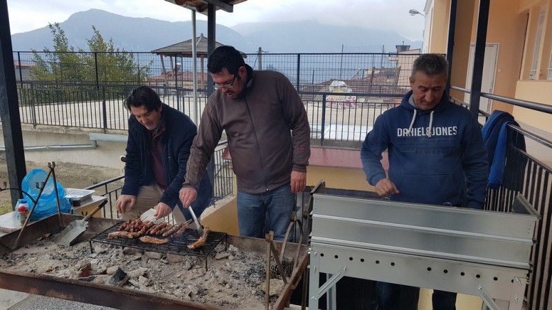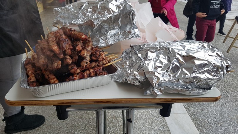 Η μυρωδιά και η «τσίκνα» από τα σουβλάκια και τα λουκάνικα που έψηναν γονείς μαθητών του σχολείου κατέκλυσαν το προαύλιο χώρο προσελκύοντας τους μαθητές κοντά στις ψησταριές δίνοντας «χρώμα» στο έθιμο.