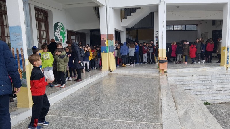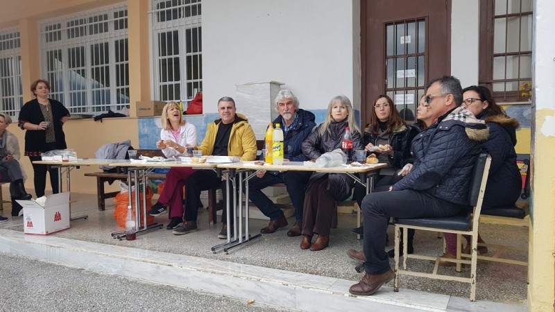 Οι μαθητές χάρηκαν μία πανηγυρική ατμόσφαιρα με χορό και τραγούδι τις δύο τελευταίες ώρες απολαμβάνοντας από τους γονείς-μέλη του Συλλόγου Γονέων τα σουβλάκια συνοδευόμενα με πατάτες και χυμό που τους μοιράστηκαν.