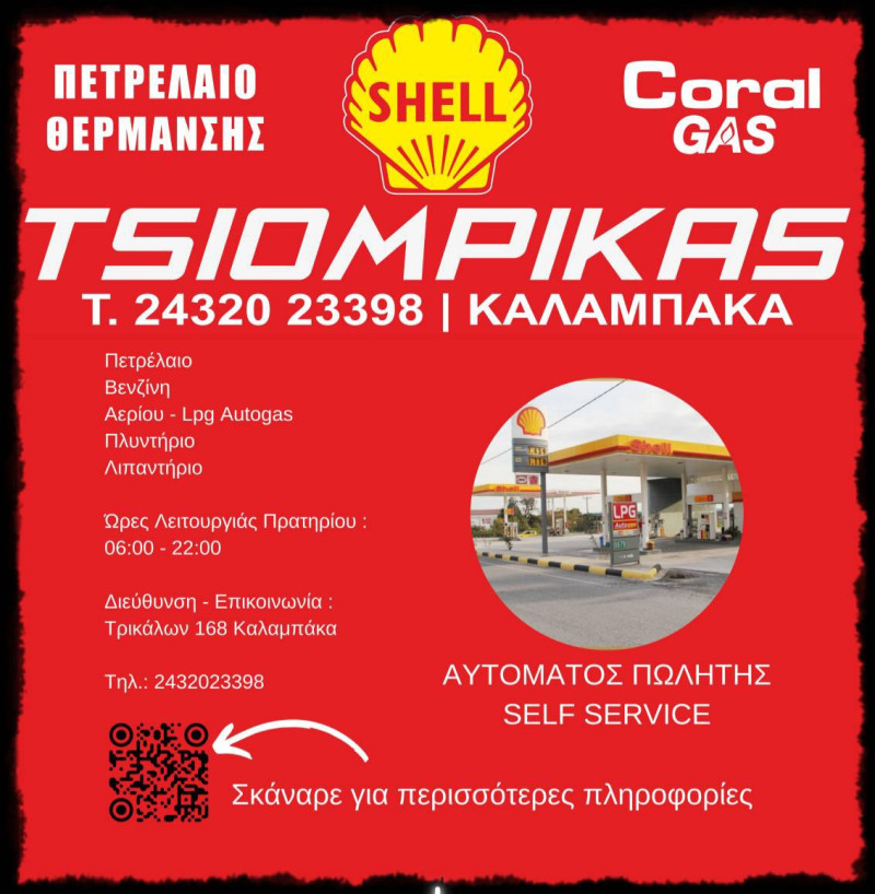 Τσιομπίκας – Πρατήριο Υγρών Καυσίμων – Βενζινάδικο SHELL στην Καλαμπάκα
