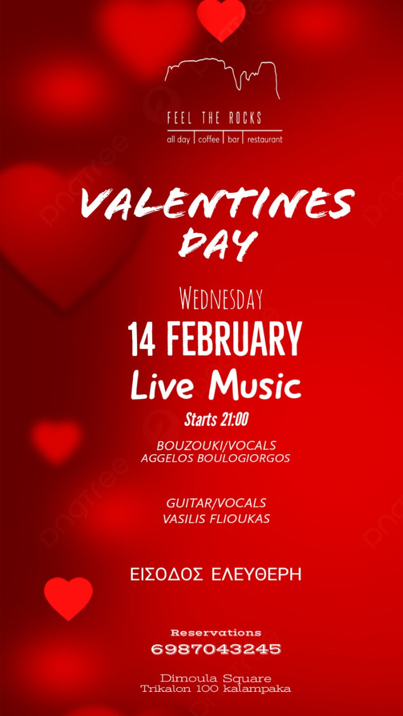 Ο Έρωτας έχει άλλη θέα.. απο το ωραιότερο Σημείο της πόλης! Η επίσιμη γιορτή τον ερωτευμένων πλησιάζει.. 14 φεβρουαρίου Τετάρτη μόνο στο Feel The Rocks ! Καλαμπάκα έχει ετοιμάσει μια ξεχωριστή βραδιά με Live μουσική με έντεχνο λαϊκό πρόγραμμά με τους