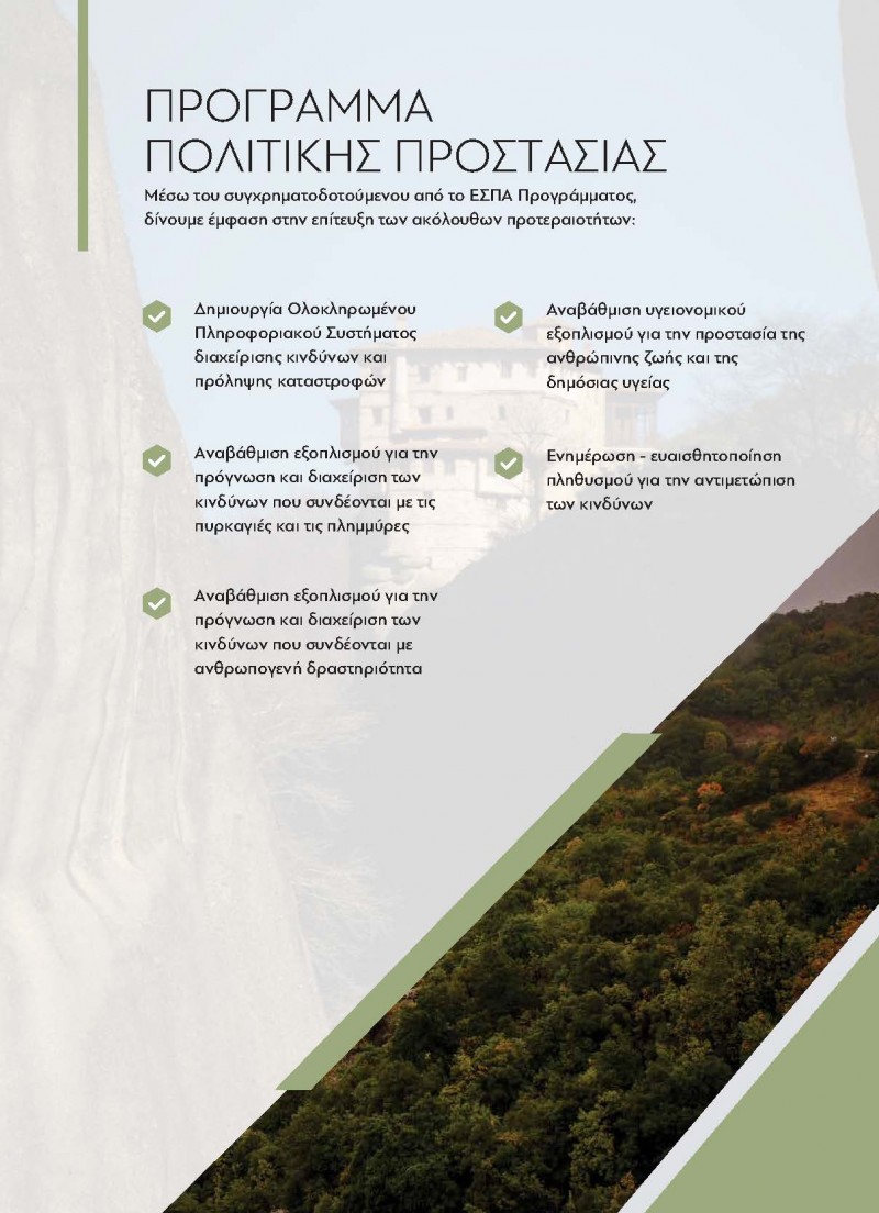 Οι λόγοι που για εμάς το κεφάλαιο της “Πολιτικής Προστασίας” βρίσκεται στις πρώτες σελίδες του προγράμματος μας είναι σαφέστατοι, ειδικά σήμερα που η Θεσσαλία μας βάλλεται από έντονα πλημμυρικά φαινόμενα.