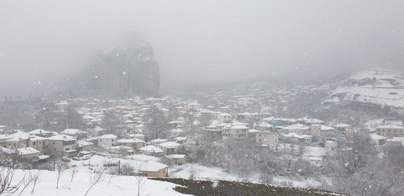 Στο χιόνι βρίσκεται η Καλαμπάκα και η περιοχή από νωρίς το πρωί.