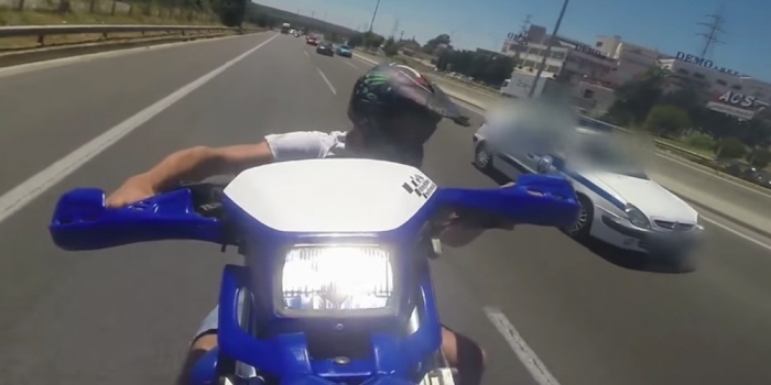Το αποτέλεσμα είναι να συνεχίσει να απολαμβάνει την οδήγηση στη μία ρόδα και να «ευχαριστεί» τους αστυνομικούς που δεν τον σταμάτησαν.