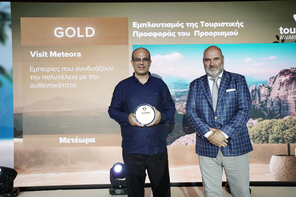 Για ακόμη μία χρονιά, το Visit Meteora τιμήθηκε στα Tourism Awards, επιβεβαιώνοντας τη σταθερή του παρουσία και συνεισφορά στον ελληνικό τουρισμό. Στη φετινή λαμπερή τελετή που πραγματοποιήθηκε στο Grand Hyatt Athens, αποσπάσαμε χρυσό βραβείο στην κατηγορία “Εμπλουτισμός της Τουριστικής Προσφοράς του Προϊόντος”, φτάνοντας συνολικά τα 6 χρυσά και 6 ασημένια βραβεία στον θεσμό.