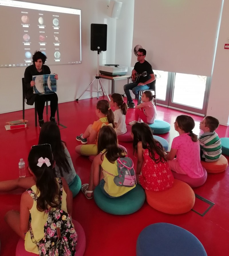 Τα παιδιά άκουσαν ζωντανή μουσική μαντολίνου από τον κο Ζήση Ρούστα, ο οποίος έπαιξε μελωδίες που εξυμνούν το φωτεινό ουράνιο σώμα, όπως το “Moonlight Serenade” και το “Dia Luna Dia Pena.”