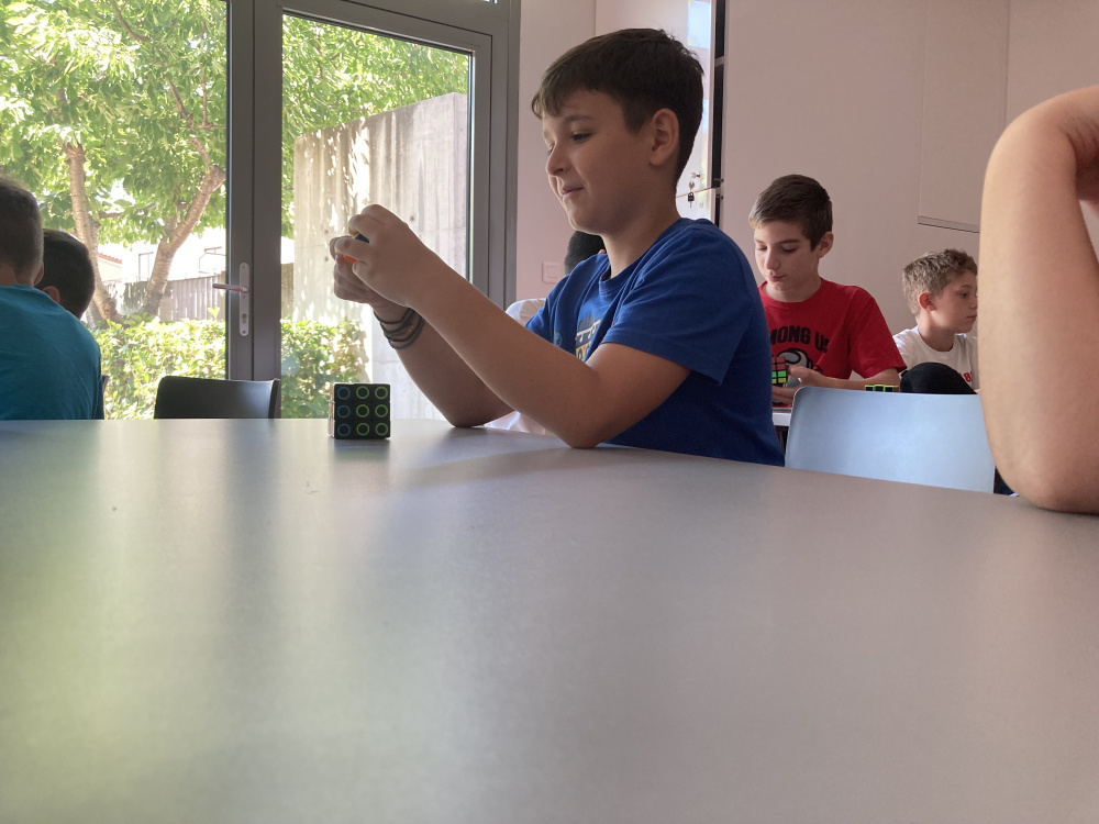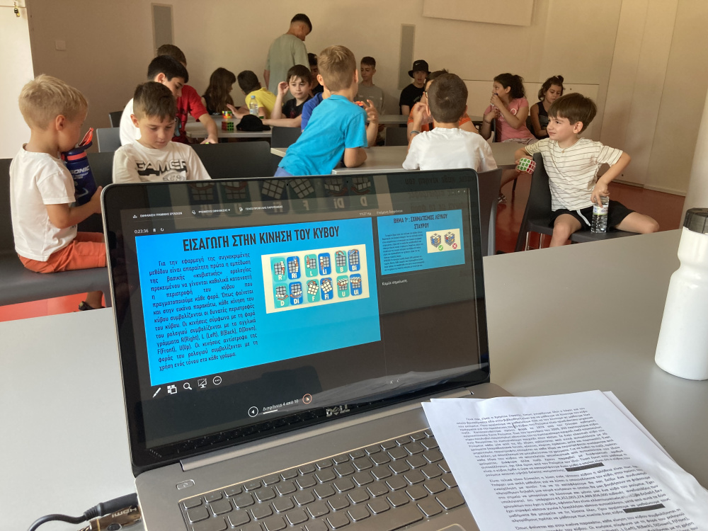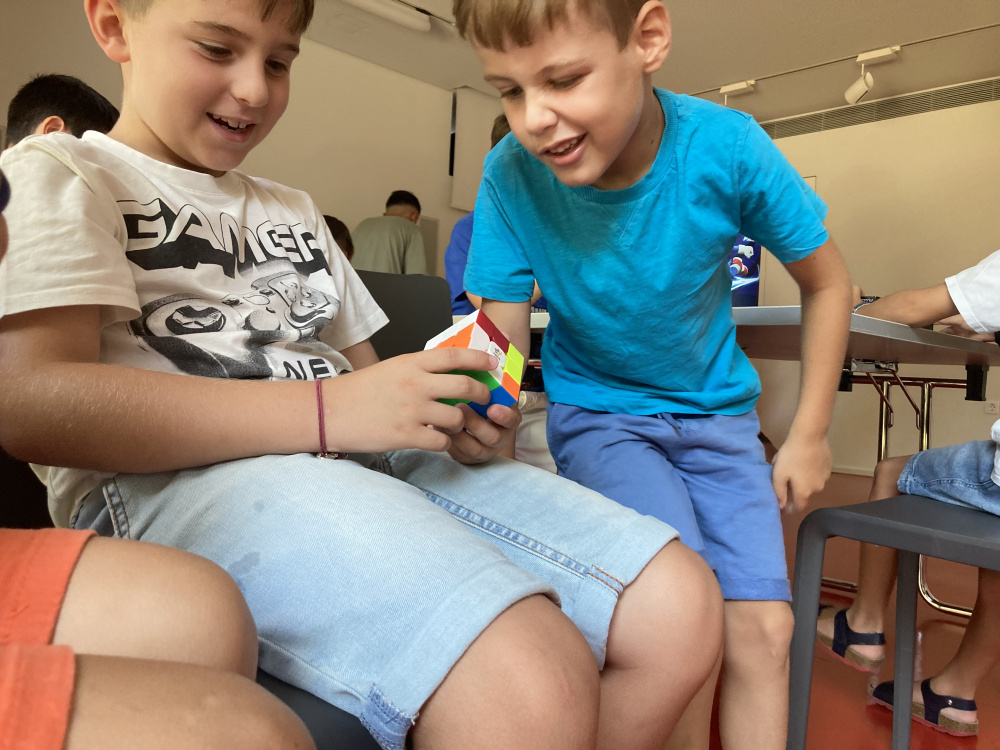Οι μικροί εξερευνητές της λογικής και της υπομονής έμαθαν την ιστορία του εμβληματικού κύβου, τις βασικές έννοιες – έδρες, ακμές και γωνίες, και έκαναν τα πρώτα τους βήματα στην επίλυση, κατακτώντας τον… πολυπόθητο λευκό σταυρό!