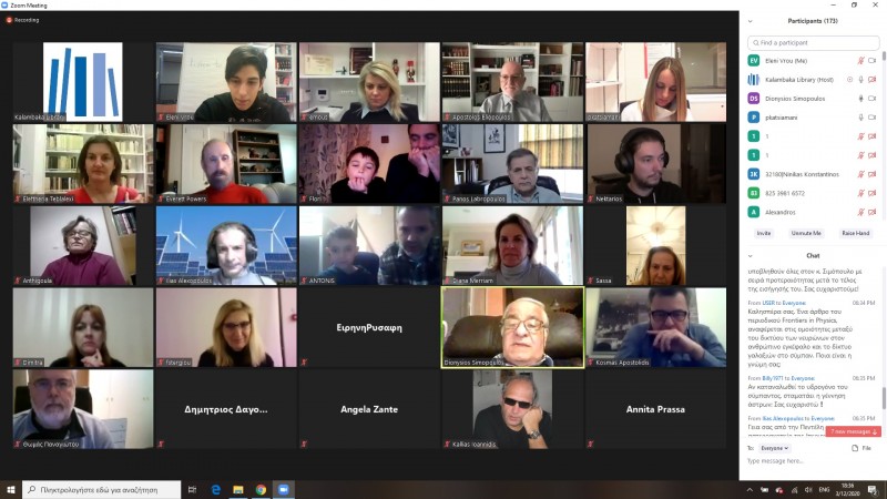 Το απόγευμα της Πέμπτης 3 Δεκεμβρίου πραγματοποιήθηκε η τηλεδιάσκεψη με τον αστροφυσικό και επίτιμο διευθυντή του Ευγενιδείου Πλανηταρίου, κ. Διονύσιο Σιμόπουλο με θέμα «Η αποκάλυψη του σύμπαντος».