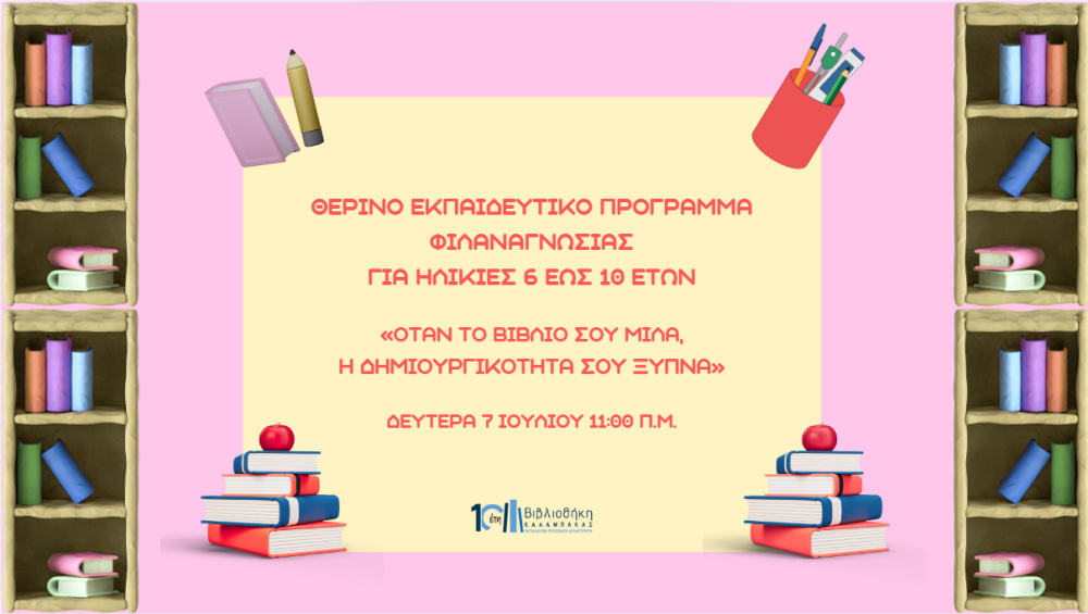 Βιβλιοθήκη Καλαμπάκας: Θερινό Εκπαιδευτικό Πρόγραμμα Φιλαναγνωσίας για Παιδιά 6–10 ετών