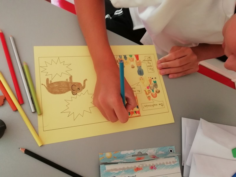 Στη συνέχεια, οι μικροί μας φίλοι δημιούργησαν κόμικ όπου παρουσίασαν την εμπειρία τους και το πως κατάφεραν να ανακαλύψουν τον κλέφτη – το φοβερό πειρατή Μαυρογένη – και να πάρουν πίσω το λάφυρο του, τον “Χρυσό Ελέφαντα!”.