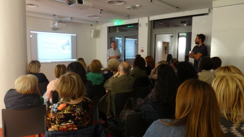 Παρουσίασε τη βιβλιογραφία του και έπειτα μίλησε για το νέο του βιβλίο Λίγες και Μία Νύχτες, δείχνοντας στο κοινό φωτογραφίες της παλιάς Θεσσαλονίκης.