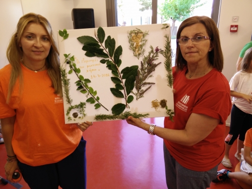 Ακολούθησε ένας μικρός περίπατος στον κήπο της βιβλιοθήκης όπου εξερεύνησαν τα λουλούδια που βρίσκονται εκεί. Έπειτα με κλειστά τα μάτια τους και με οδηγό τις αισθήσεις τους προσπάθησαν να μαντέψουν ποιο ήταν το βότανο που κρατούσαν. Η δράση ολοκληρώθηκε με την δημιουργία 2 υπέροχων κολάζ με τα αρωματικά φυτά που έμαθαν!