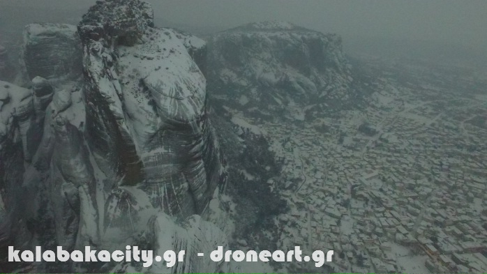 Βόλτα πάνω από την χιονισμένη Καλαμπάκα, τα Μετέωρα και το Καστράκι απο το droneart και το kalabakacity.gr