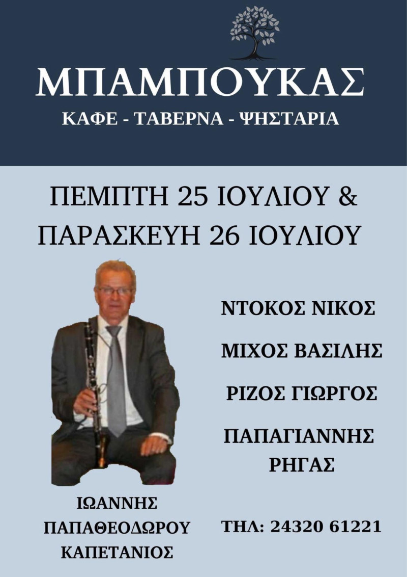 Και απόψε Παρασκευή 27 Ιουλίου θα διασκεδάσετε με Δημοτική ορχήστρα από γνωστούς μουσικούς έως το πρωί…