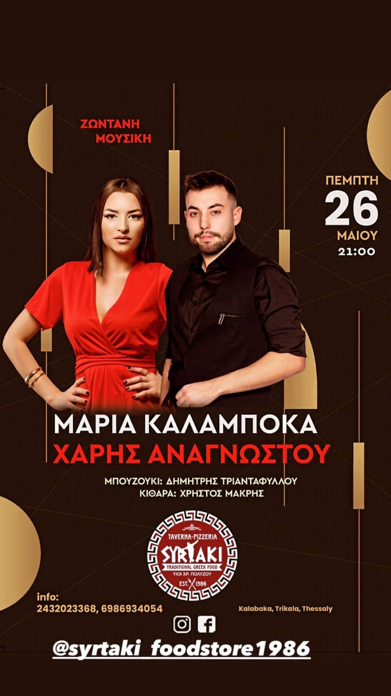 Βραδιά ζωντανή μουσική έχει ετοιμάσει για όλους το γνωστό κατάστημα της πόλης μας SYRTAKI για την Πέμπτη 26 Μαϊού το βράδυ.