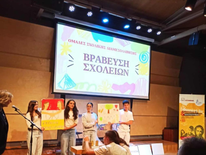 30 Σεπτεμβρίου 2025 σε μια πολύ όμορφη εκδήλωση με θέμα «Ενδοσχολική Βία και Σχολική Διαμεσολάβηση» στην αίθουσα εκδηλώσεων του Κέντρου Έρευνας στο Μουσείο Τσιτσάνη στα Τρίκαλα, βραβεύτηκαν τα σχολεία του Νομού Τρικάλων που συμμετείχαν στο μεικτό Πρόγραμμα Επιμόρφωσης εκπαιδευτικών στη Σχολική Διαμεσολάβηση, το οποίο οργάνωσε η Διεύθυνση Δευτεροβάθμιας Εκπαίδευσης Τρικάλων.