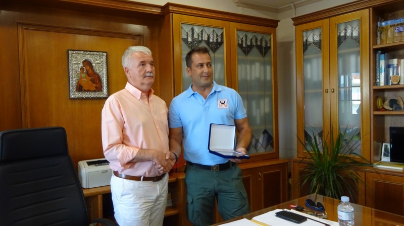 Πραγματοποιήθηκε σήμερα 12/9/2019 στο Δημαρχείο η βράβευση του Δημοτικού Αστυνόμου Αθανάσιου Λάιου για την Θεάρεστη Πράξη να επιστρέψει μεγάλο χρηματικό ποσό που χάθηκε στον ιδιοκτήτη του.