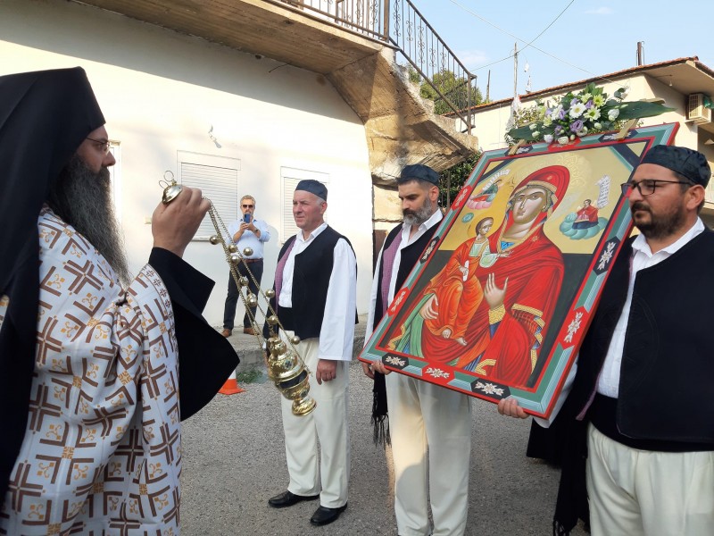 Κάτοικοι του χωριού, της περιοχής, Δημοτική Αρχή και Αρχές και τη συνοδεία της Φιλαρμονικής του Δήμου Καρδίτσας υποδέχθηκαν την εικόνα η οποία θα μείνει μόνιμα στον Ι.Ν.