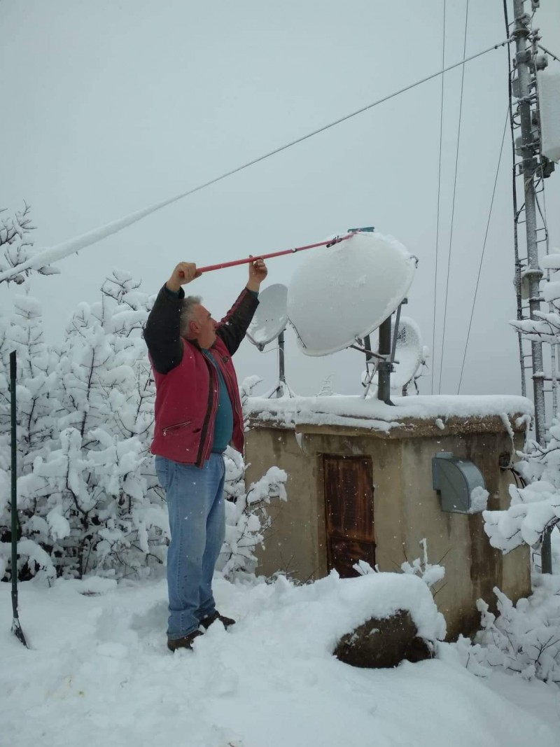 Οι δυο συντοπίτες μας απο την Διάβα εφτασαν διασχίζοντας με μεγάλη προσπάθεια το χιονι στο σημείο της εγκατάστασης που βρισκεται στον δρομο προς Κορομηλιά και “ξεχιονισαν” την κεραία…