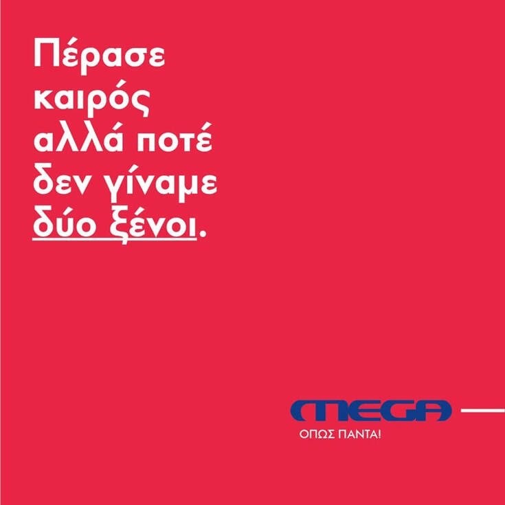 «MEGA όπως πάντα» είναι το σλόγκαν που συνοδεύει την διαφημιστική καμπάνια.