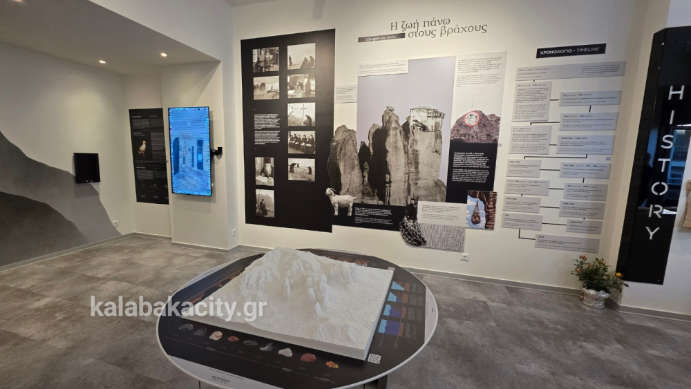 Η μόνιμη έκθεσή του είναι αφιερωμένη στην ιστορία των Μετεώρων, προσφέροντας μια ξεχωριστή immersive εμπειρία μέσα από διαδραστικές εφαρμογές, ιστορικές αφηγήσεις και εντυπωσιακές προβολές.