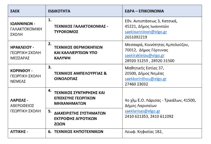 Ξεκινούν τη Δευτέρα 7 Ιουλίου2025 οι εγγραφές στις Δημόσιες Σχολές Ανώτερης Επαγγελματικής Κατάρτισης (ΣΑΕΚ) του ΕΛΓΟ-ΔΗΜΗΤΡΑ, που εποπτεύονται από το Υπουργείο Αγροτικής Ανάπτυξης και Τροφίμων.