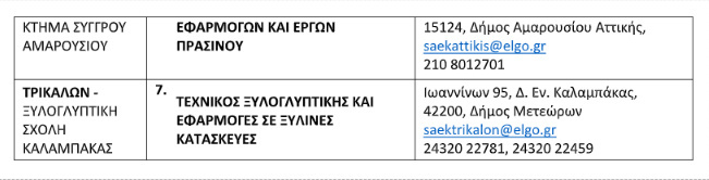 Το έτος κατάρτισης 2025-2026 θα λειτουργήσουν με πρωινό ωράριο, έξι (6) ΣΑΕΚστις Περιφερειακές Ενότητες: Ιωαννίνων, Ηρακλείου, Κορίνθου, Λάρισας, Αττικής και Τρικάλων,