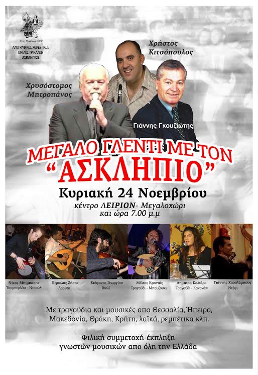 θα αποτελέσει “παράδοση ” Και φέτος ο Λαογραφικός Χορευτικός Ομιλος Τρικάλων ” Ο Ασκληπιός ” διοργανώνει γλέντι για όλους τους χορευτές και φίλους του συλλόγου την Κυριακή 24 Νοεμβρίου 2013 και ώρα 7 μ.μ. στο κέντρο Λείριον στο Μεγαλοχώρι