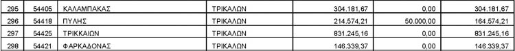 Γενικά, οι δήμοι του Νομού Τρικάλων παίρνουν τα εξής ποσά: