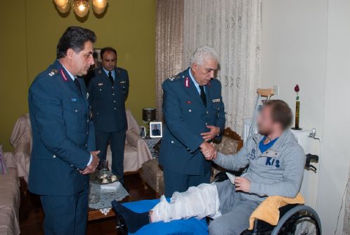 Ο Γενικός Επιθεωρητής Αστυνομίας Βορείου Ελλάδος, Αντιστράτηγος Δημήτριος Τσακνάκης, ο Γενικός Αστυνομικός Διευθυντής Περιφέρειας Θεσσαλίας, Υποστράτηγος Βασίλειος Χαλάτσης και ο Αστυνομικός Διευθυντής Λάρισας, Αστυνομικός Διευθυντής Παναγιώτης Ντζιοβάρας, επισκέφθηκαν χθες (16.10.2013) το πρωί στην οικία του, τον Λαρισαίο αστυνομικό της Ειδικής Κατασταλτικής Αντιτρομοκρατικής Μονάδας (Ε.Κ.Α.Μ.), ο οποίος τραυματίστηκε τα ξημερώματα της (21.07.2013) στη Βροσίνα Ιωαννίνων, κατά τη διάρκεια ένοπλης συμπλοκής με δραπέτες των Φυλακών Τρικάλων.