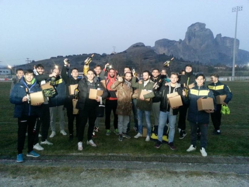 Οι ποδοσφαιριστές της ομάδος της Καλαμπάκας, αφού προπονήθηκαν και την Πέμπτη στα βοηθητικά γήπεδα του «Βασίλης Καρακίτσιος» γιόρτασαν την έλευση των Χριστουγέννων με μια μικρή γιορτή, η οποία διοργανώθηκε προς τιμήν τους στον χώρο των αποδυτηρίων από την Διοικούσα Επιτροπή.