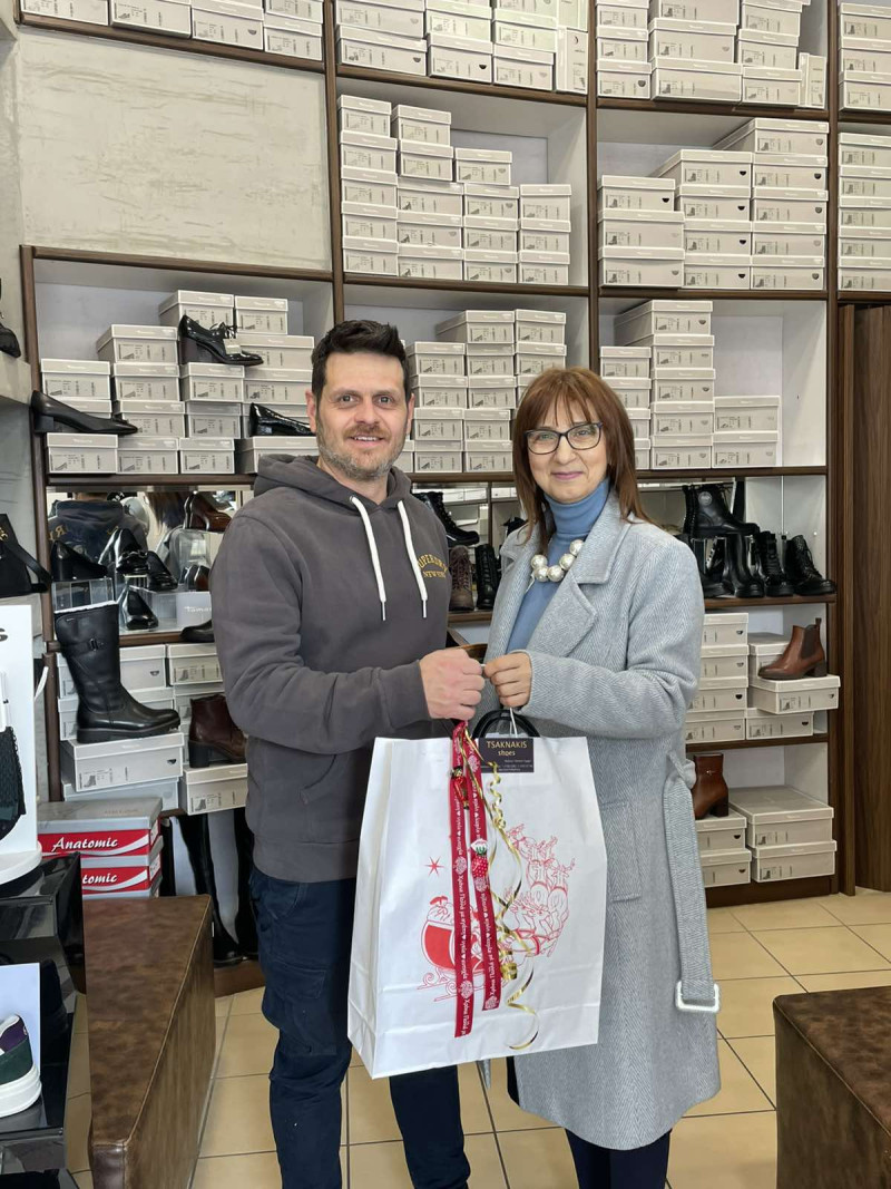Από την κλήρωση που έγινε τυχερή αναδείχθηκε η κα Βάσω Γκιάτα που παρέλαβε το δώρο από τον ιδιοκτήτη του καταστήματος κ. Γιώργο Τσακνάκη.