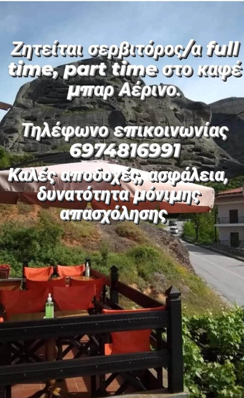 Ζητείται σερβιτόρος/α, full time, part time, για εργασία στο καφέ ΑΕΡΙΝΟ.
